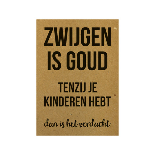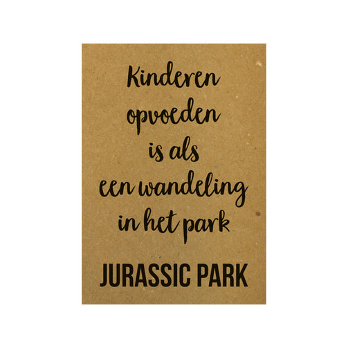 Het is een bruine ansichtkaart van eco vriendelijk kraft karton met zwarte quote. Aan de achterkant is ruimte om iets te schrijven en lijntjes voor de adresregels. Frankeren met 1 postzegel.
