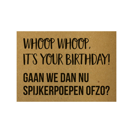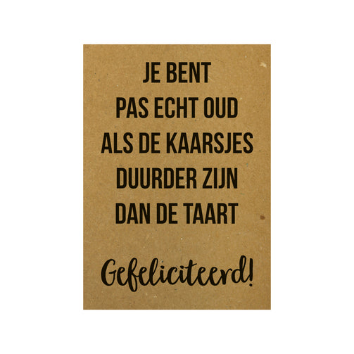 Het is een bruine ansichtkaart van eco vriendelijk kraft karton met zwarte quote. Aan de achterkant is ruimte om iets te schrijven en lijntjes voor de adresregels. Frankeren met 1 postzegel.