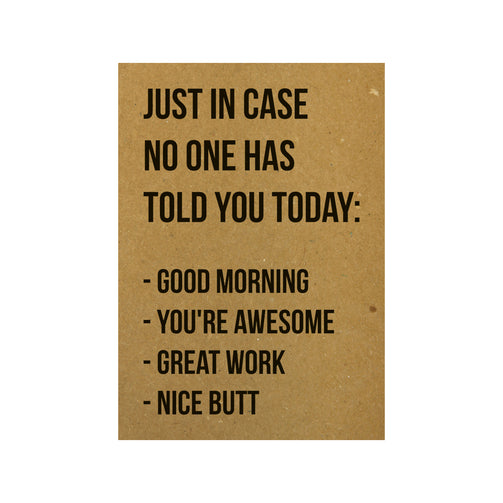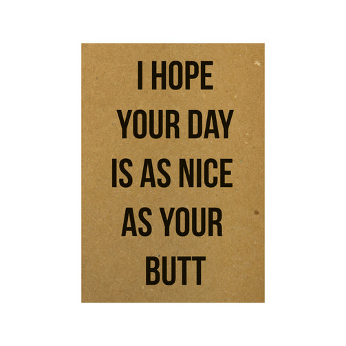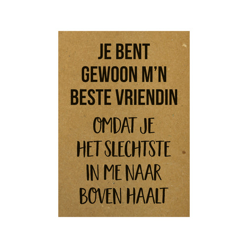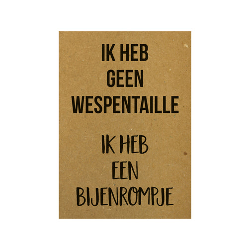 Het is een bruine ansichtkaart van eco vriendelijk kraft karton met zwarte quote. Aan de achterkant is ruimte om iets te schrijven en lijntjes voor de adresregels. Frankeren met 1 postzegel.